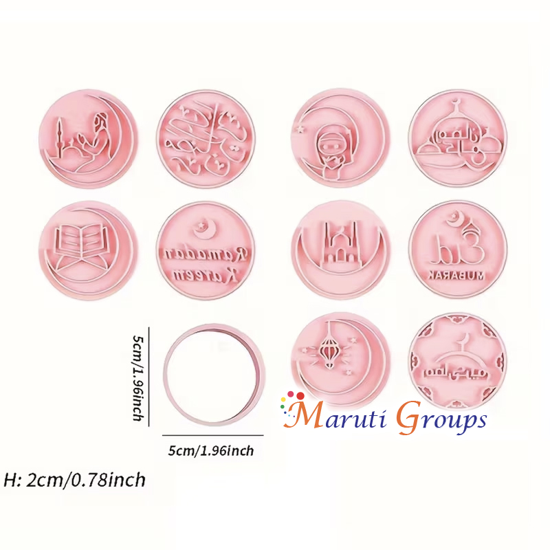 11pcs Eid Round Cookie Cutter Set – 5cm Eid Alba Embossed Cookie Cutters