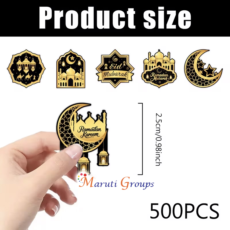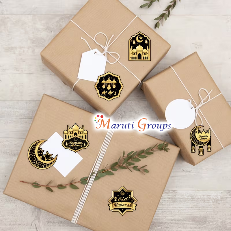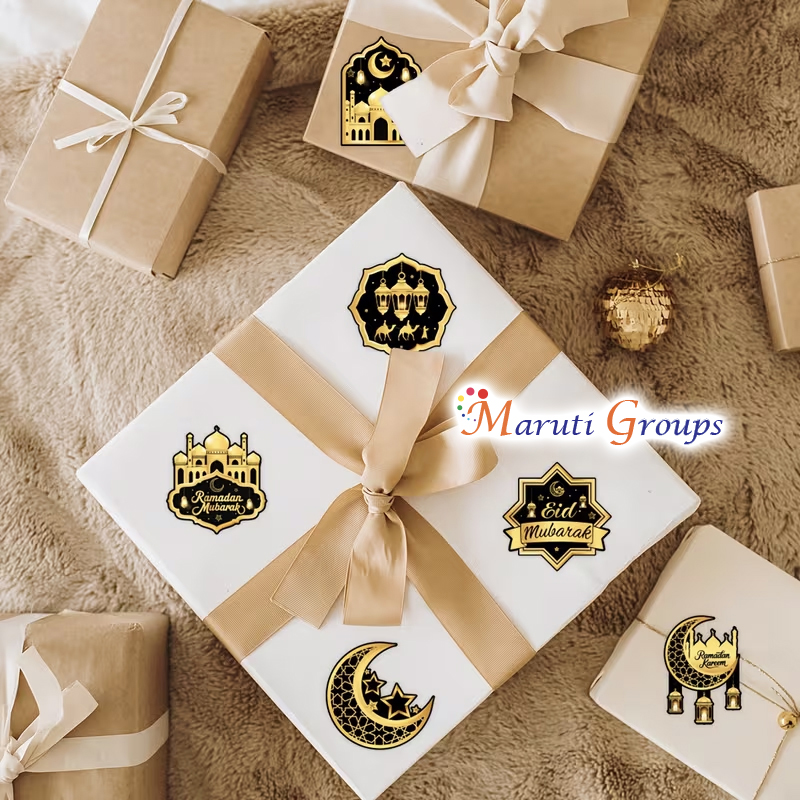 Made from durable PVC with self-adhesive backing, these stickers are easy to apply on gift boxes, treat bags, envelopes, and party favors. Ideal for DIY projects, Ramadan decorations, and festive Eid gifting.