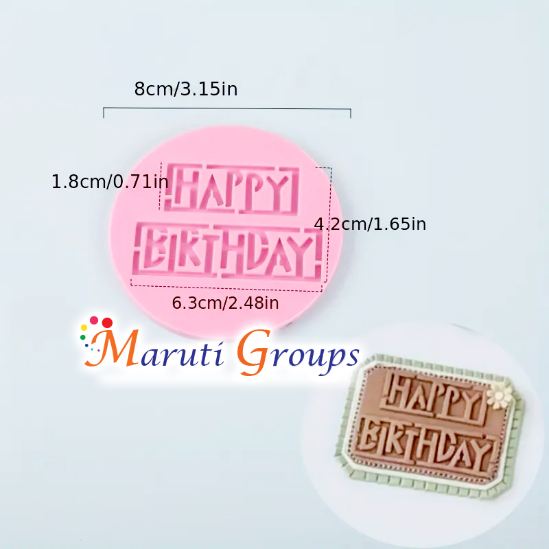 Happy Birthday Cake Stamp β Round Fondant Embosser Cookie Stamp (8cm) β Design 2