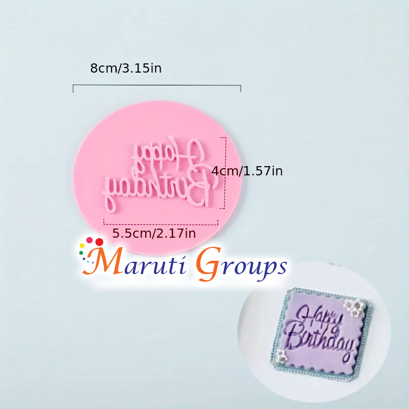 Happy Birthday Cake Stamp – Round Fondant Embosser Cookie Stamp (8cm) – Design 4