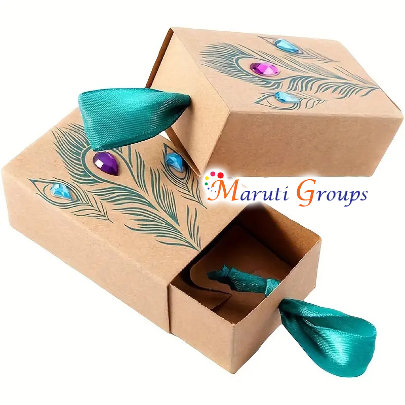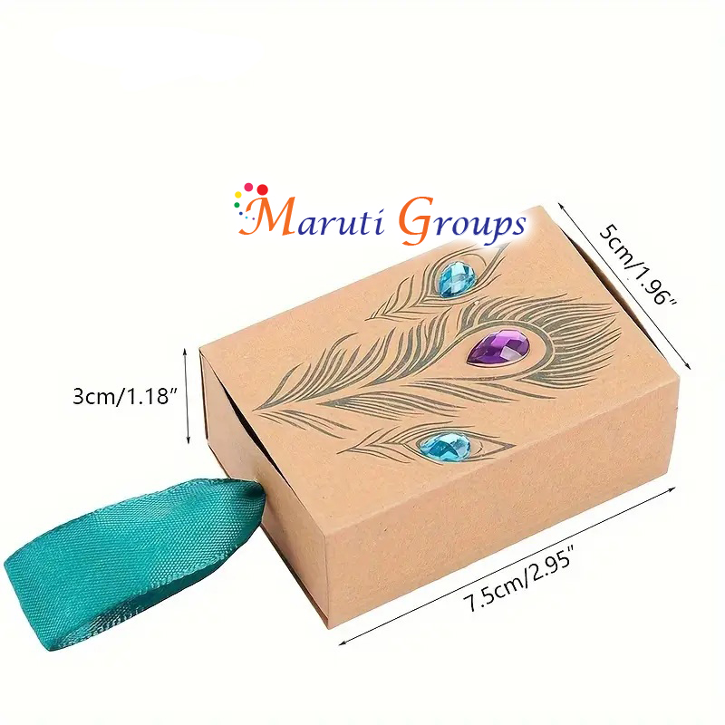 Bring elegance and tradition to your celebrations with our 5pcs Happy Diwali Peacock Feather Pattern Gift Boxes. Featuring a stunning drawer-shaped design with colorful feather motifs and sparkling rhinestone accents, these boxes are perfect for Diwali, weddings, and festive occasions. Crafted from durable kraft paper, they are ideal for presenting sweets, chocolates, jewelry, or small gifts. Add a touch of sparkle and cultural charm to your celebrations with these unique gift boxes.