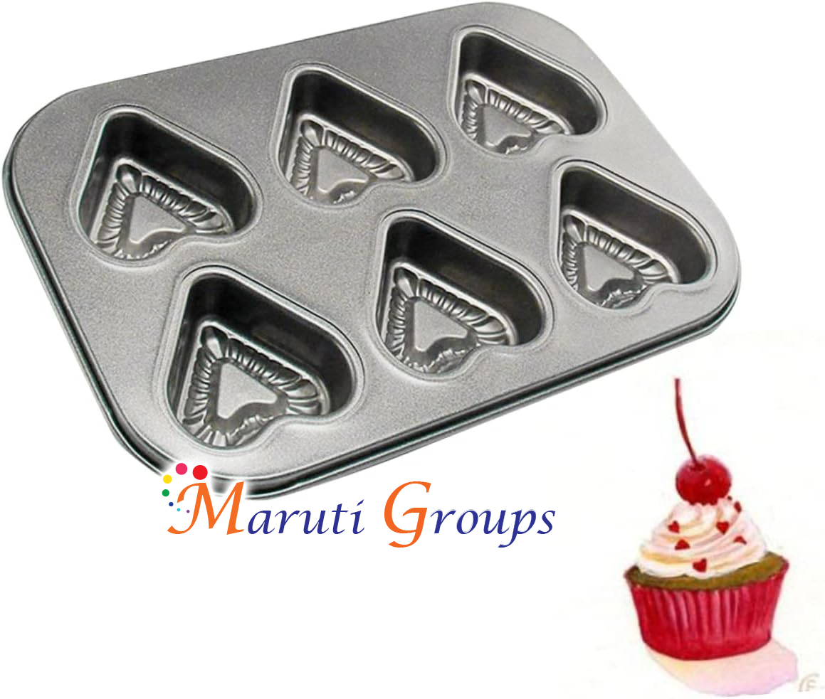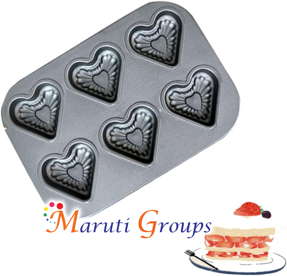 Heart Muffin Baking Tray Tin Pan β 26.2cm x 18cm (Cavity Size 6.2cm, Height 1.8cm)