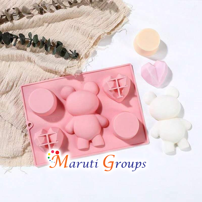 • 1pc silicone mold with heart-shaped teddy bears and round cylinder cavity