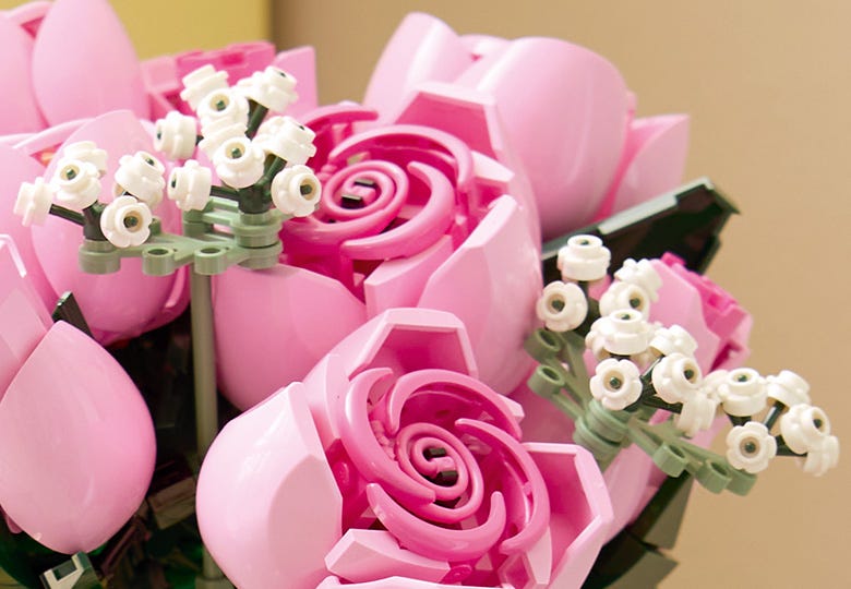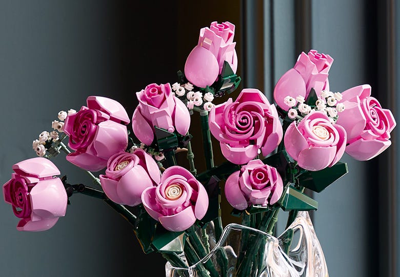 Whether displayed as home décor or given as a thoughtful gift, the LEGO® Bouquet of Pink Roses is perfect for special occasions or everyday elegance.