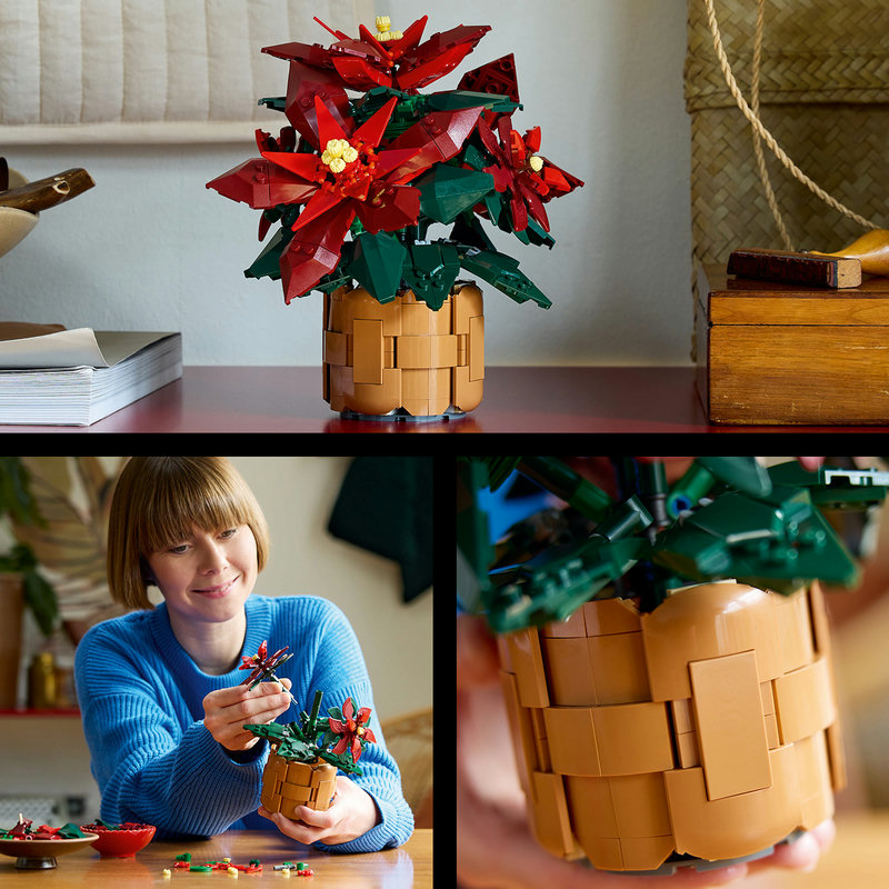 Bring festive charm and year-round elegance into your home with the LEGO® Botanicals Poinsettia. Inspired by the iconic holiday plant, this beautifully detailed artificial plant is part of the LEGO® Botanical Collection and is designed especially for adult builders.
