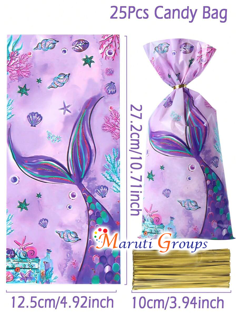 25pcs Lot DIY Mermaid Tail Theme Candy Bags – Gift Bags, Cellophane Bags for Sweets & Chocolate (27.5cm x 13.5cm)