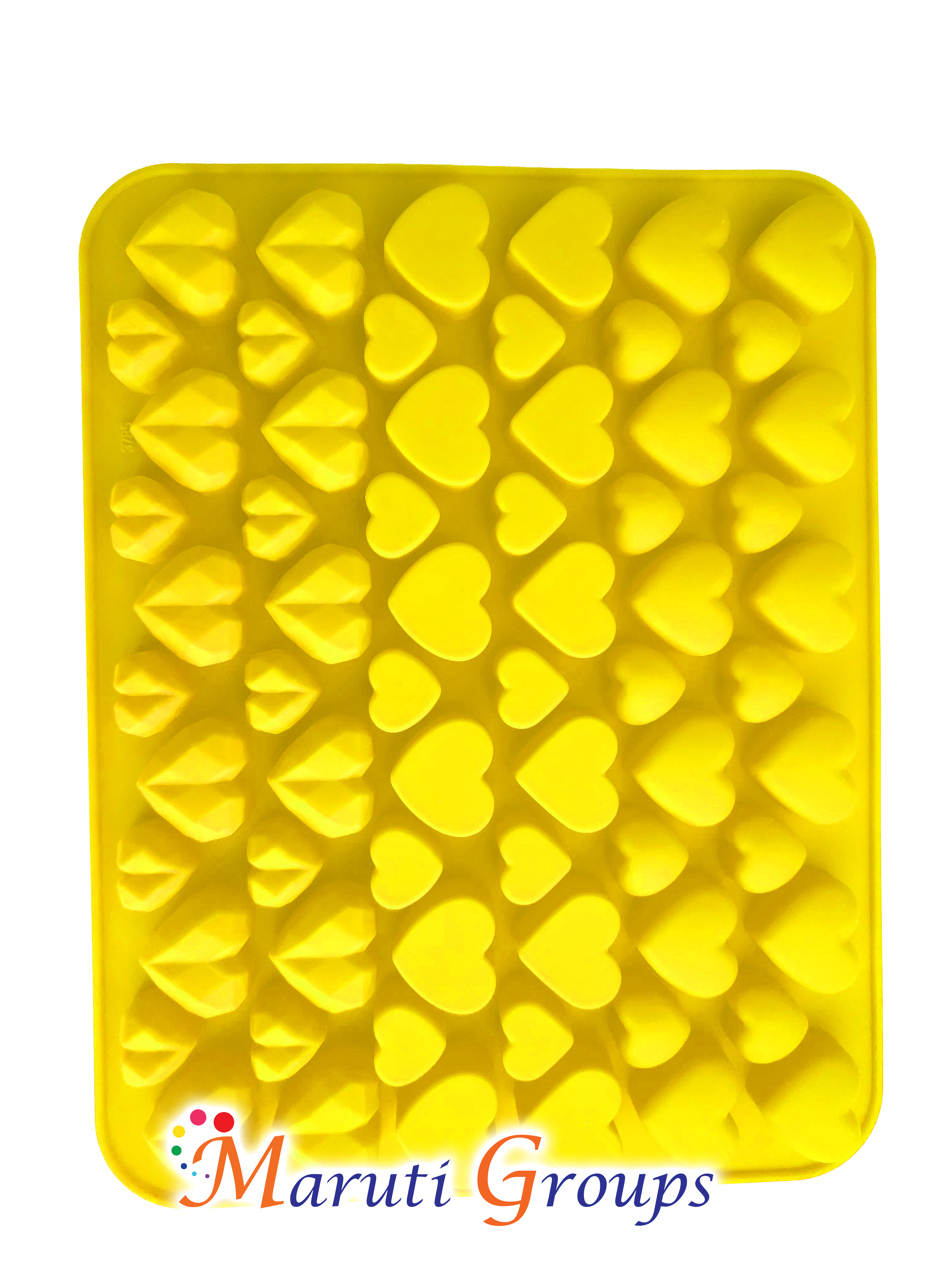- Multi-cavity design with geometric heart and mini heart shapes