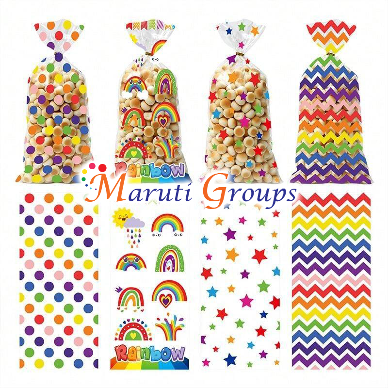 25pcs Lot DIY Rainbow Theme Candy Bags – Gift Bags, Cellophane Bags for Sweets & Chocolate (27.5cm x 13.5cm)