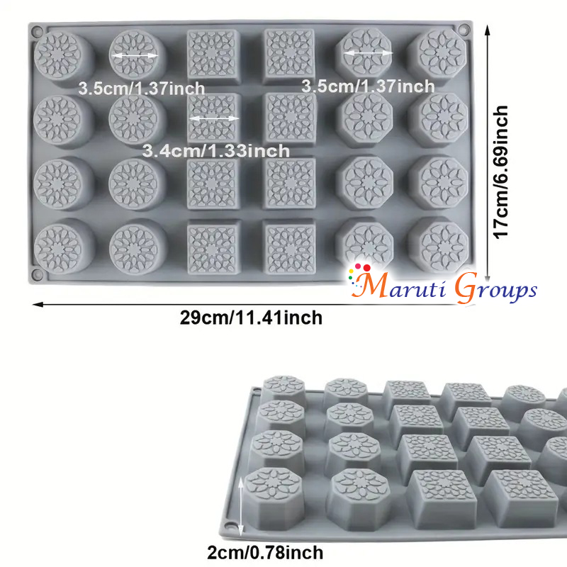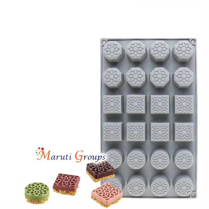 Square & Round Burfee Penda Sweetmeat Silicone Mould – Chocolate & Sweet Mould (29cm x 17cm)